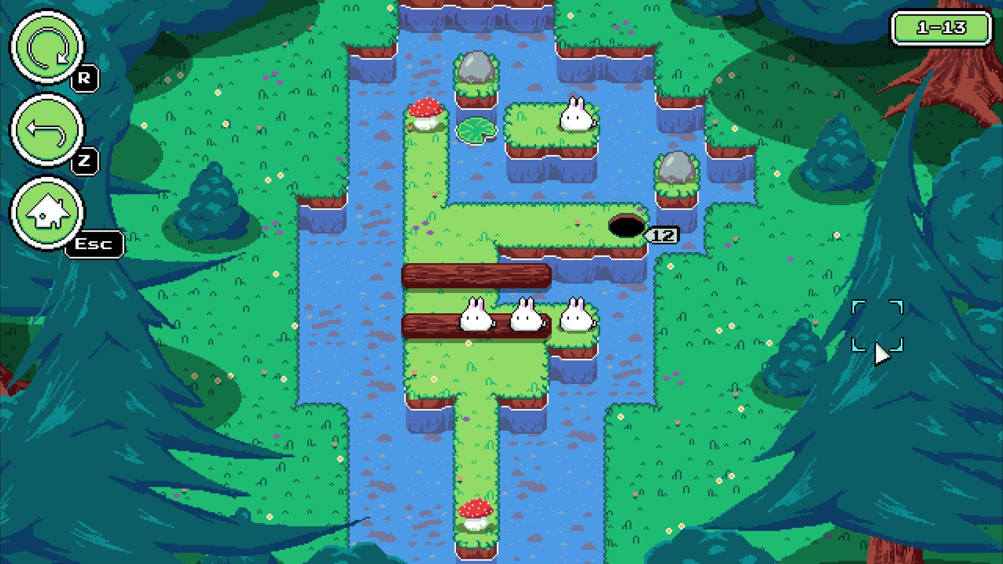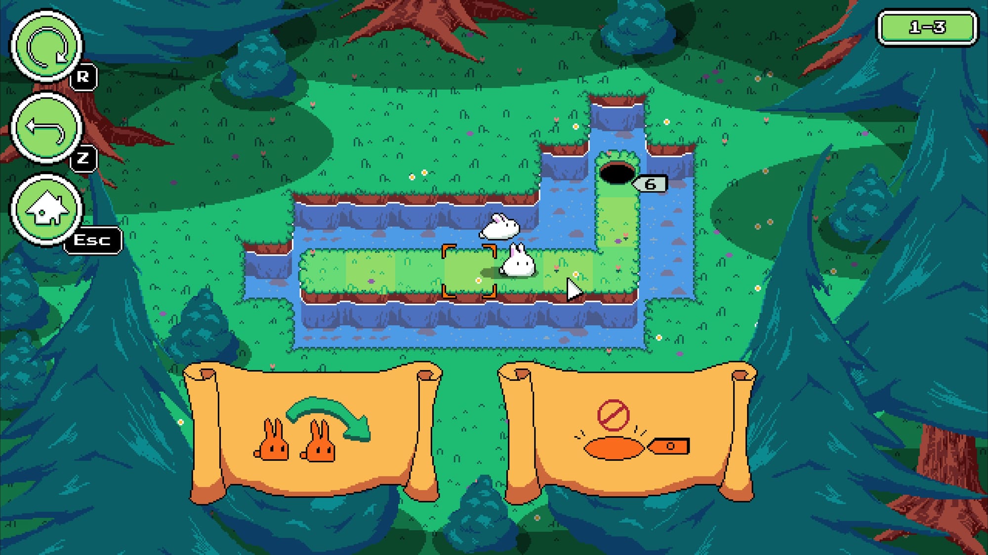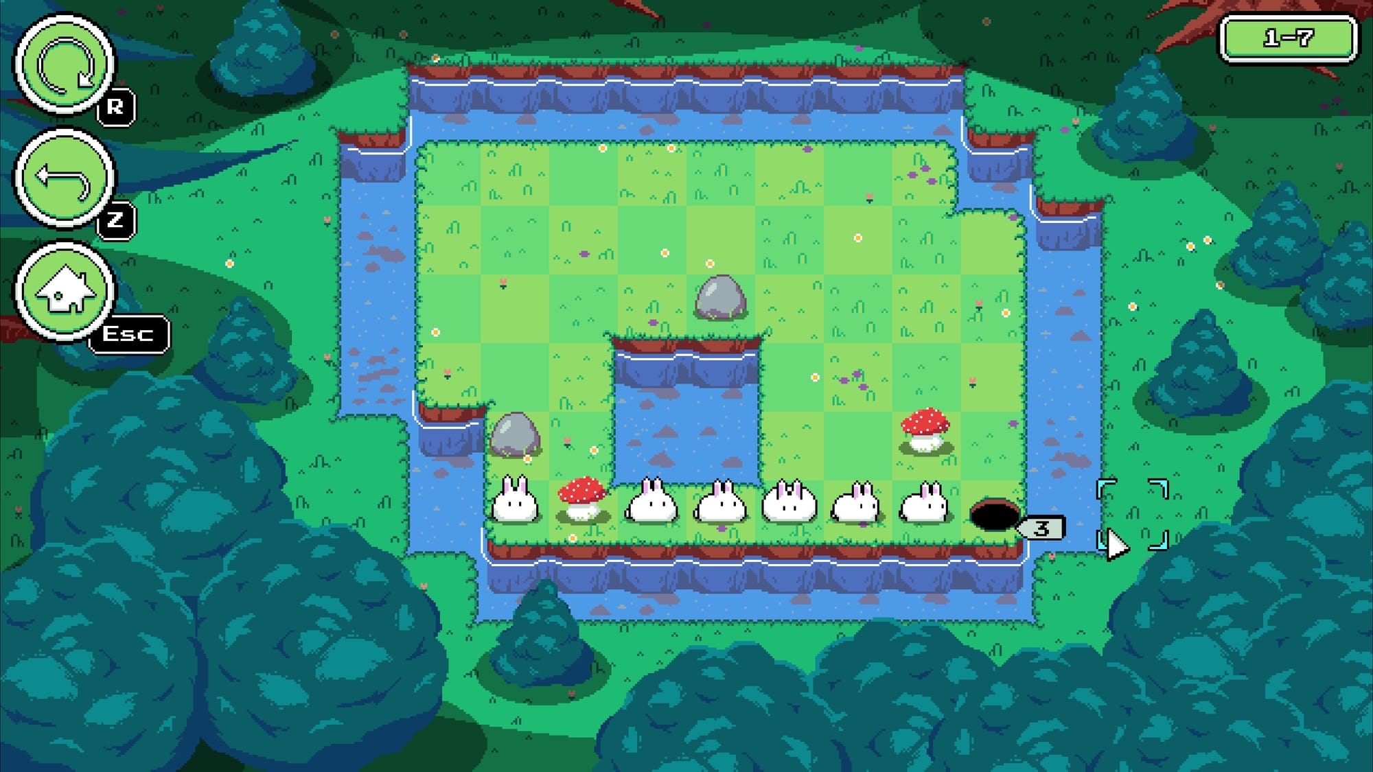A cute puzzle game about making rabbits hop to their barrow. I'm not sure if I was overthinking things or if it's actually surprisingly tricky, but the demo definitely took a lot longer per level than I would've expected. The mechanics require very careful consideration of which rabbit you move when, and how to save precious moves by hopping greater distances