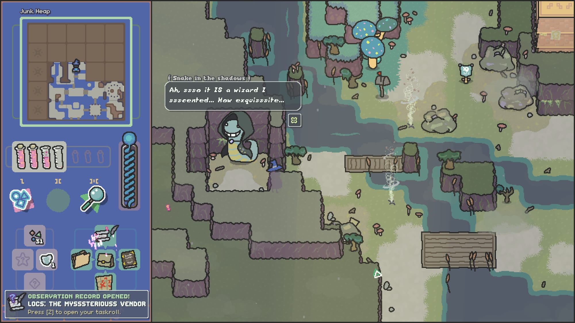 Phenomenally silly top-down adventure. You're a wizard trying to make your way back to the wizard tower after a casual defenestration. But the whimsical world outside the wizard academy grounds is gonna make that a long ordeal. The world has style, the UI has style, the characters have pizzazz. Just a great experience all around