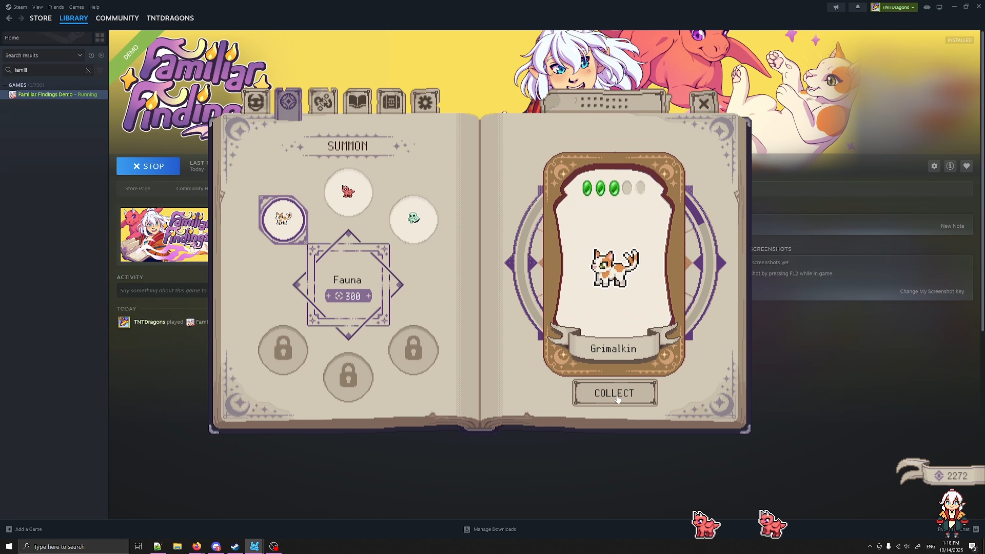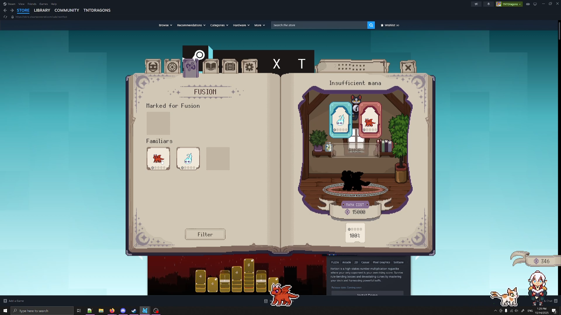A mix of idle games and desktop pets, where you can have tiny pixel creatures roam the bottom of your screen as you do anything else. The art is cute, and you can combine different monsters into new ones, though the fusions don't exactly follow from the mixed familiars into the outcome