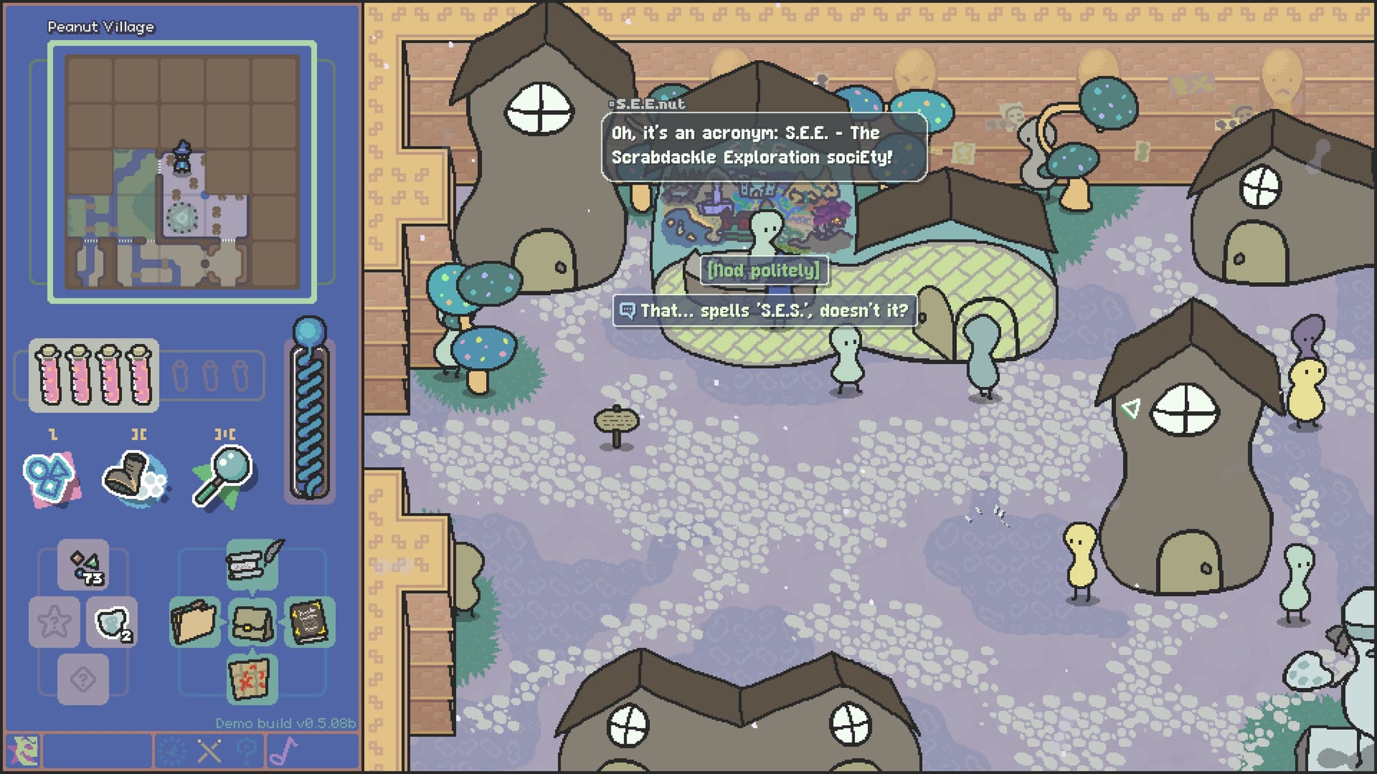 Scrabdackle has not left my mind since I played it. It is to me the unequivocal "winner" of the Fest, and I cannot wait to get my hands on the release of the first Act later this year. Around every turn there is something unexpected: Dust mites pretending to be a wizard, a dubious snake merchant, or a flock of very nationalist ducks: