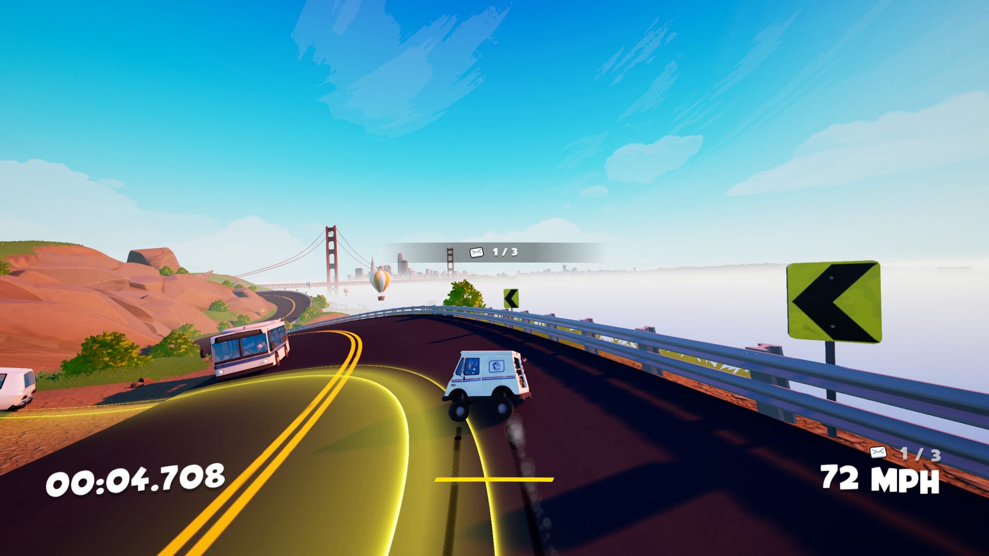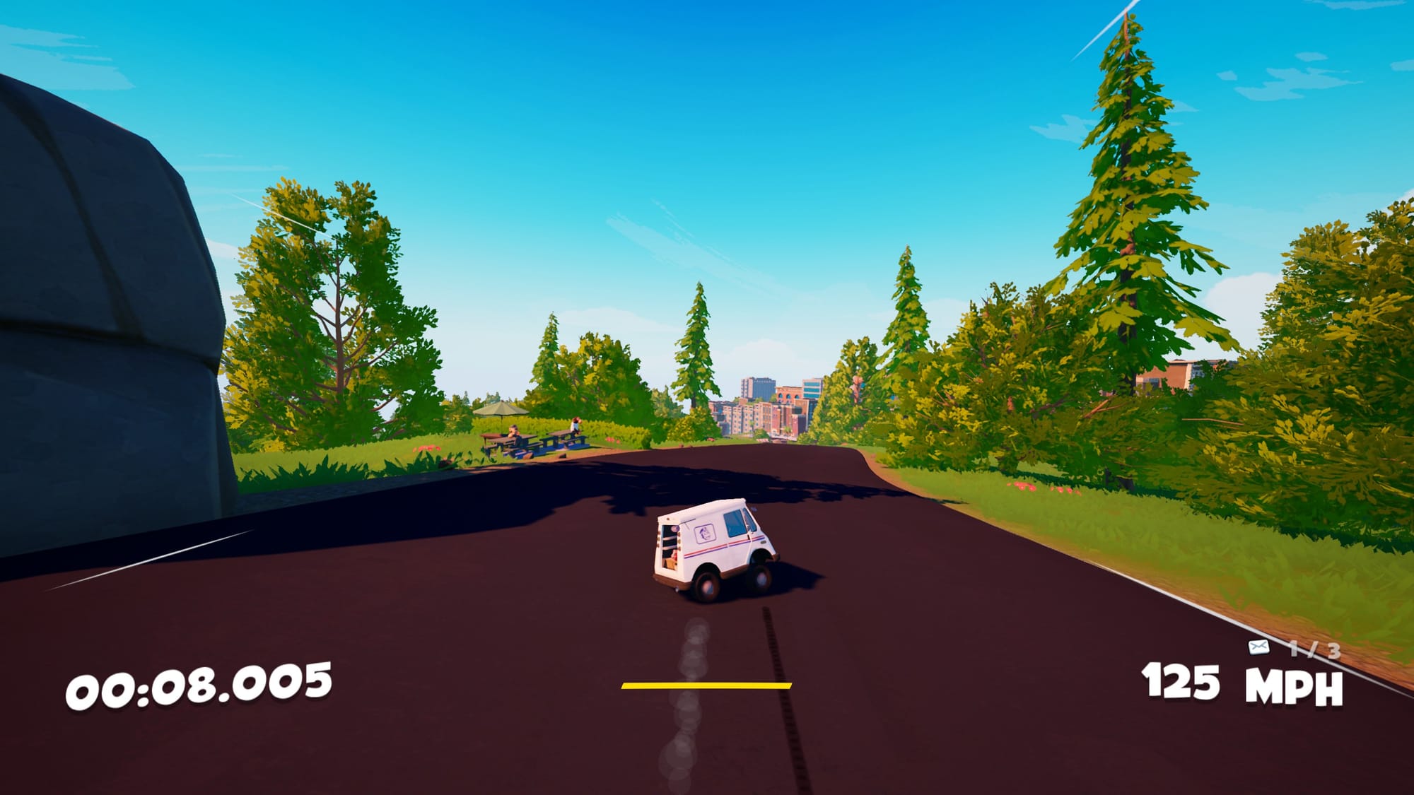 I have mixed feelings about this game. The core is that you're a delivery driver with a bomb in your trunk, so you gotta deliver these packages fast. Drift to gain boost, boost to go faster, all the good stuff. But I've had a really hard time with the controls which, while responsive, felt like they took a second to actually affect my truck due to all the momentum. It's not necessarily a bad thing, provides a lot of room for skilled truck control, but it reminded me more of rage games than arcade racing ones
