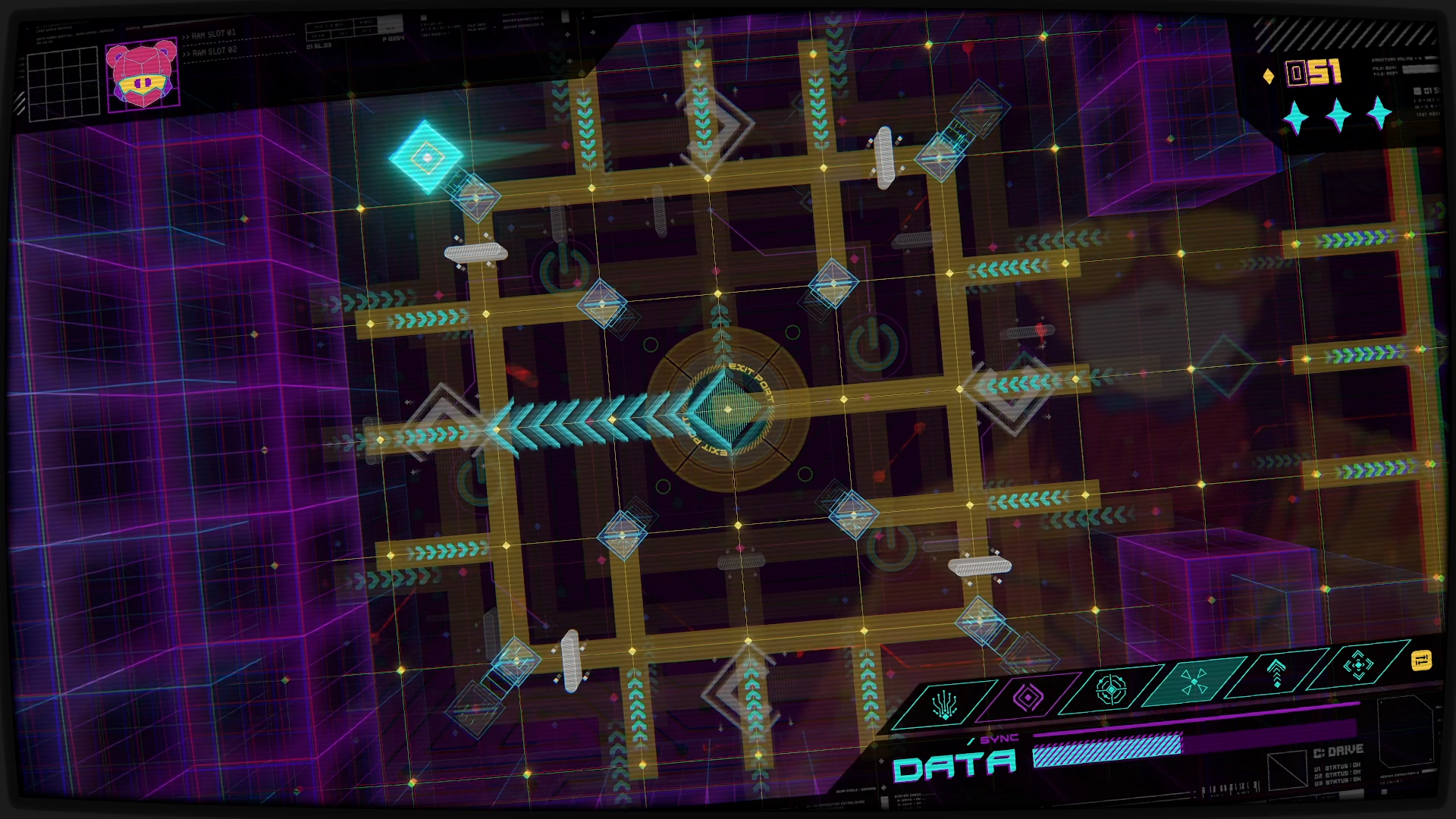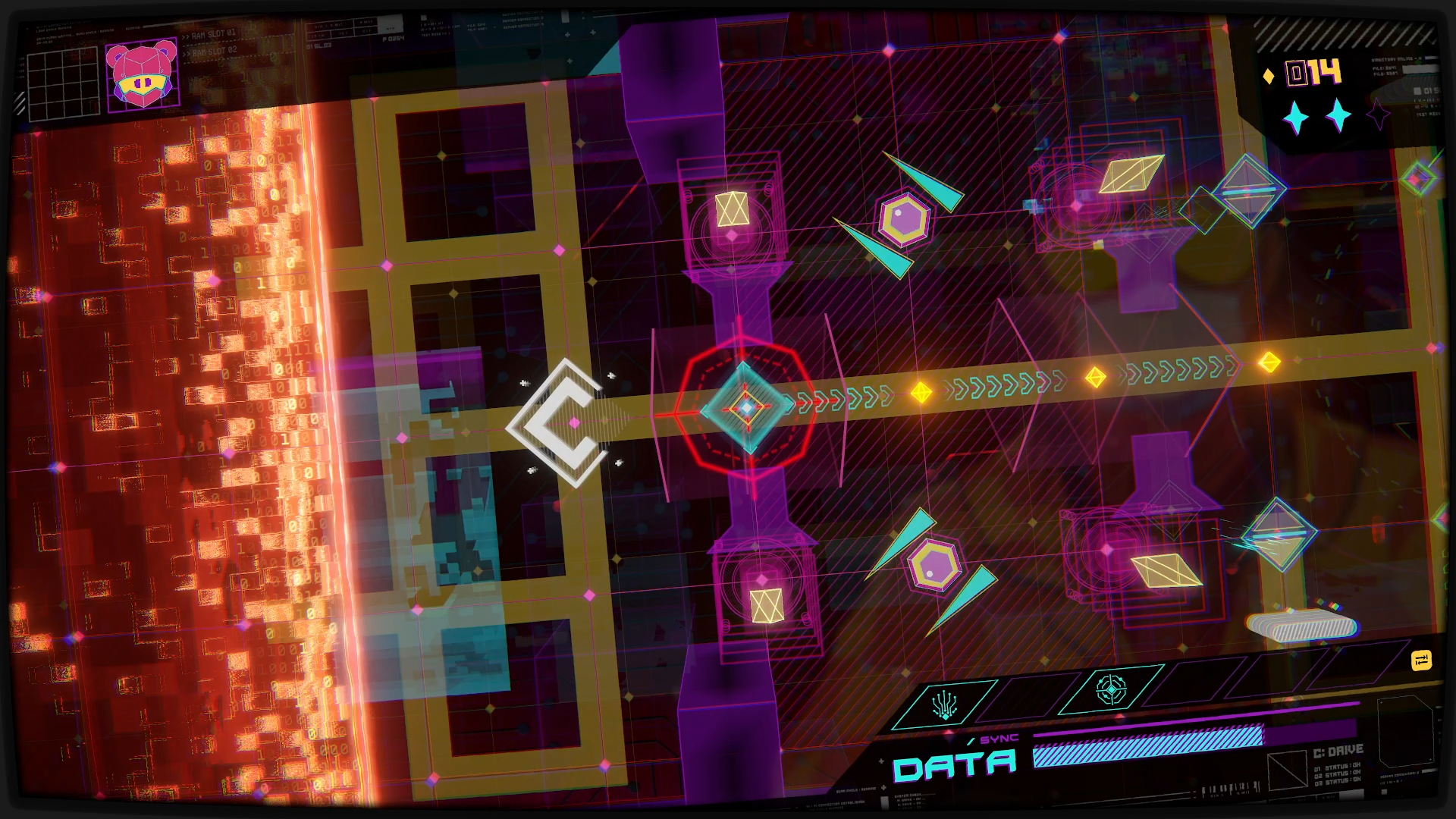 A cybernetic dungeon crawler, with multi-level maze-like dungeons you have to puzzle your way through, all to the beat of the background track. There is a lot of visuals in this one, adding to both the ambience and the difficulty. And between various secret nooks and finding the optimal path through the mainframe, there is plenty to enjoy here, with my main complaint being lack of checkpoints in the levels